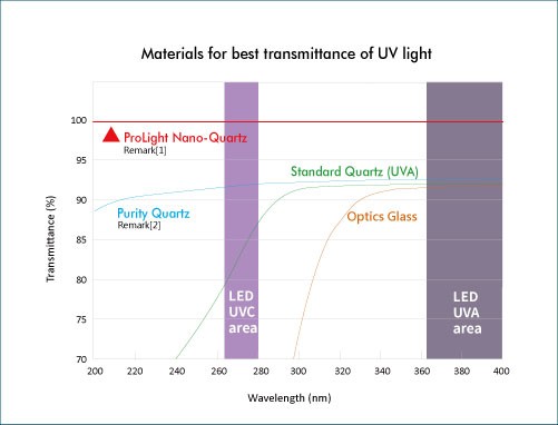 Otherwise, ProLight adopts Germany high purity quartz, its high transmittance of UV light covers wavelength ranges from UVA to UVC, which is most suited for UV output. With narrow viewing angle (48° /60°) to deliver more focused power.