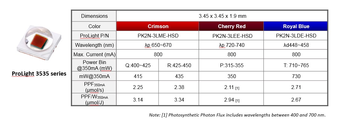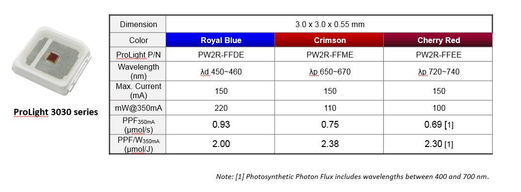 葳天植物成長LED系列,在基板的設計上,採用葳天獨家的TMHAL技術能有效降低熱阻,並且封裝有獨特之抗硫化設計,可靠度、老化壽命更優於他廠。主要有3瓦的3535封裝及0.5瓦的3030封裝,主要波長範圍有450nm (royal Blue), 660nm (crimson), 730nm (cherry red),並通過PPF分檔及LM-80可靠度測試。